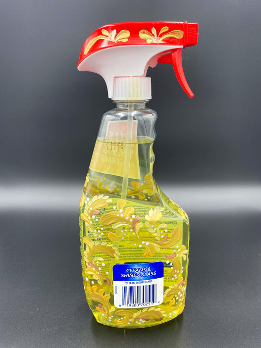 The Adornamented Series values the daily culture and practices of my Chicanx and Latinx community as worthy of reflection and art making. Each painted item cherishes and shares these daily practices and culture by making high art from hot sauce bottles that my community uses in their daily lives, whether or not they go to galleries or museums.